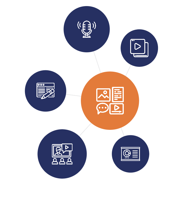 We specialize in multiplying your content gems into new assets that can be relaunched and redistributed across your digital marketing channels. For example, one podcast episode or webinar could turn into:
